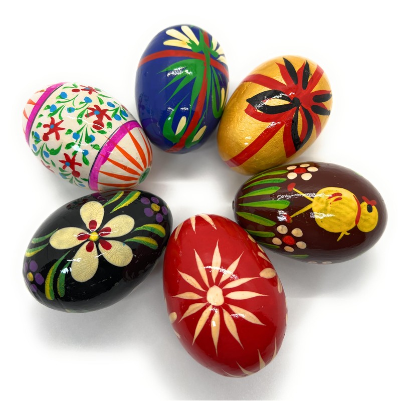 Rumikrafts Handpainted Wooden Easter Eggs, Ecofriendly and Lightweight, Kids Friendly, pisanki Style (Set of 6, Set E)