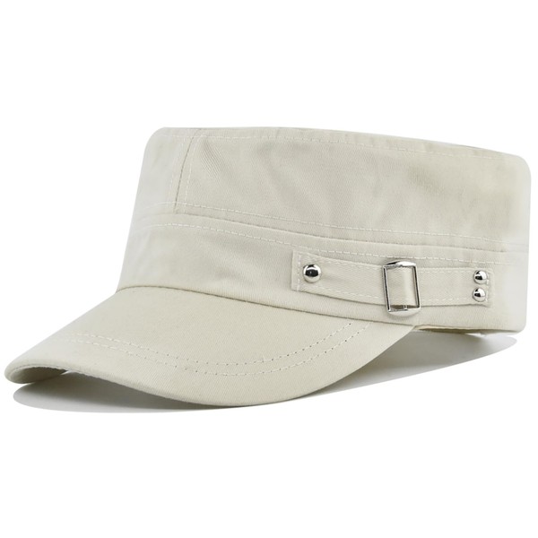 Rumnoke Cadet Army Cap for Women Men Unisex Flat Top Cap Adjustable Military Corps Hat Baseball Cap White
