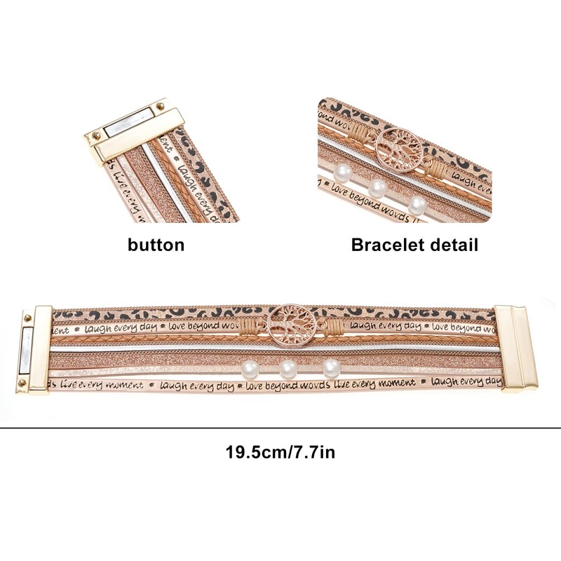 Rumnoke Leopard Leather Wrap Bracelets for Women Multilayer Cuff Bangle with Magnetic Buckle Tree