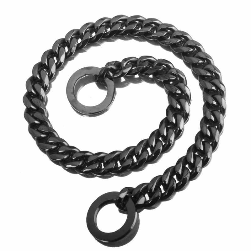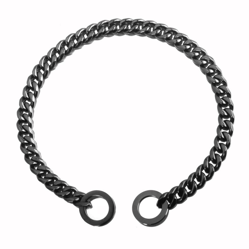 RUMYPET Black Dog Chain Collar 11mm/15mm/19mm Cuban Link Chain Dog Collar Chew Proof Dog Chain Collar Walking Training for Small Medium Large Dogs 12-26inch(11mm,14inch)