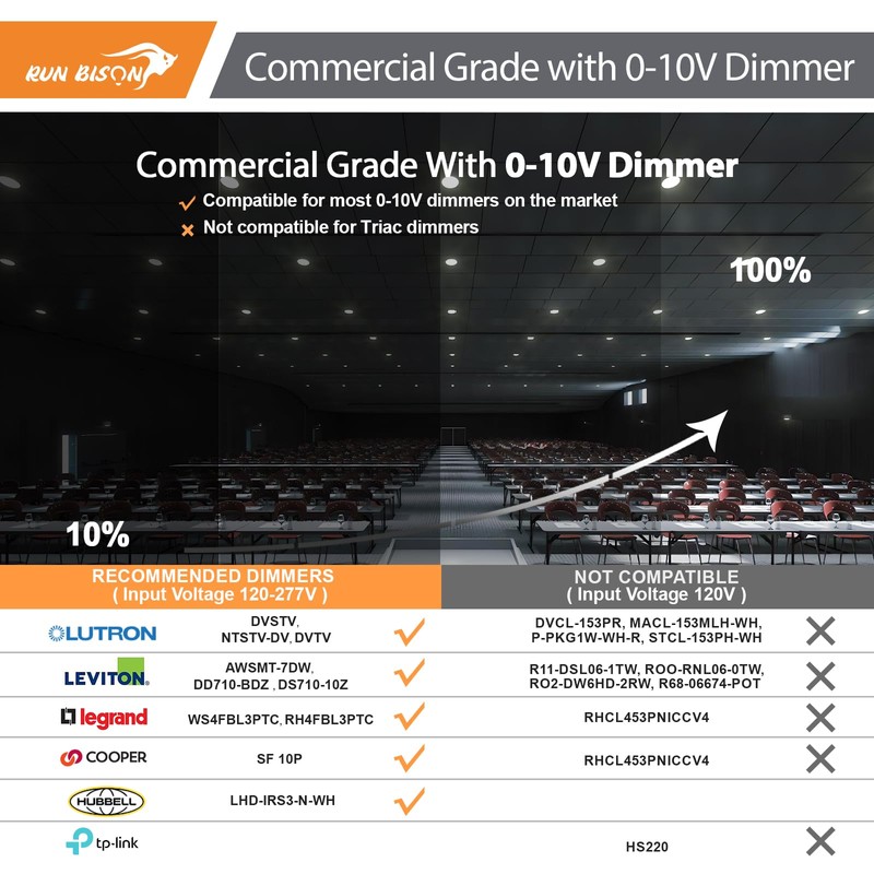 - 【0-10V Smooth Dimming】The 10" commercial canless LED downlight can match most dimmers in the market, smooth dimming ranges from 10% to 100% with a 0-10V dimmer. Adjust your recess lights to your preferred setting so you have just the perfect amount of lighting needed. With a wet location and IC rating, these recessed LED commercial downlight 6-inch kits are ideal for all commercial applications, new and old construction, remodeling, soffit, eaves, and any indoor and outdoor location.