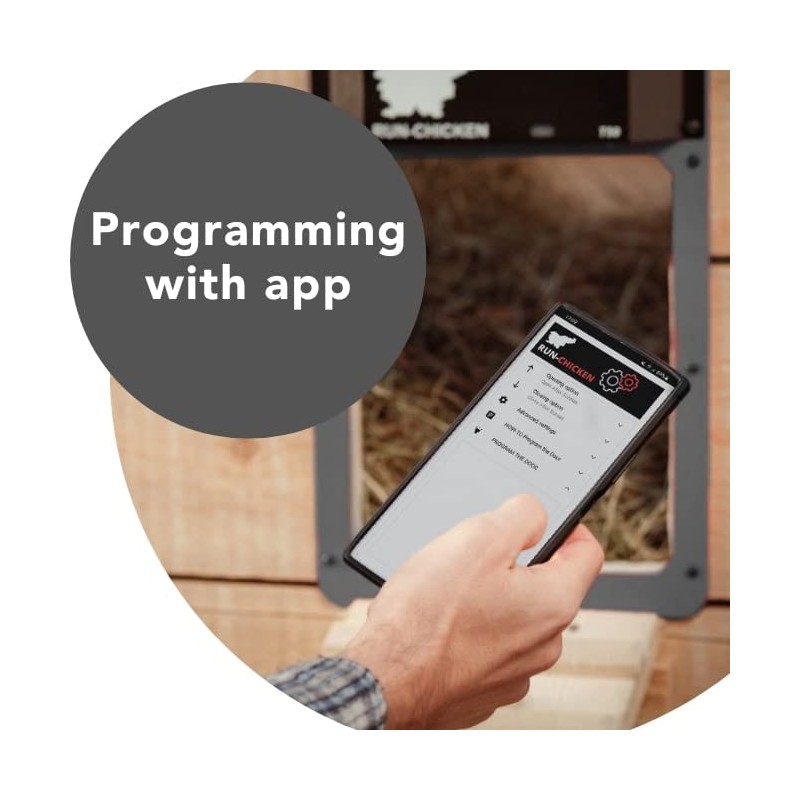 RUN-CHICKEN Door (Gray) Automatic Chicken Coop Door, Timer and Programmable Light Sensor, Battery Powered, Evening and Morning Delay, Chicken Coop Door Opener, Chicken Accessories, Model T50