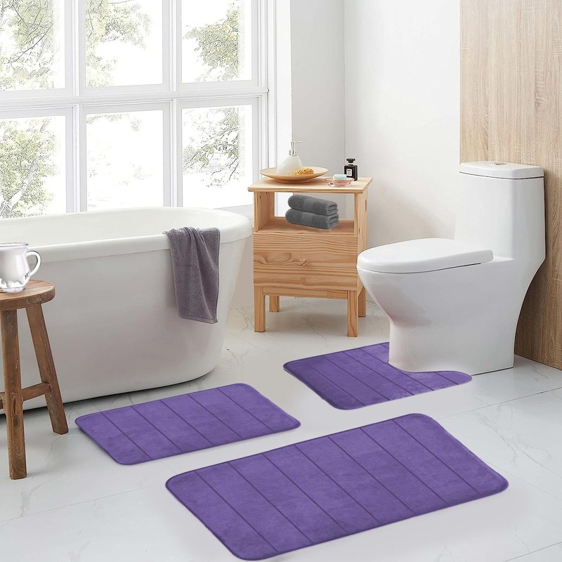 Bath Mats for Bathroom Comfort Memory Foam Bath Rug Set 3 Piece Non-Slip Bath Mats Lavender