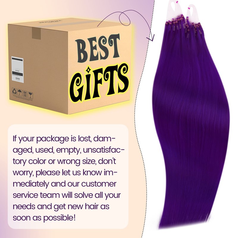 RUNATURE Purple Micro Ring Extensions Real Hair 45 cm Micro Ring Real Hair Extensions Colourful Purple Microlink Hair Extensions Real Hair Straight Hair 18 Inches 25 g