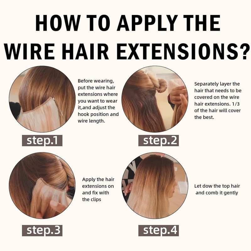 Easy to adjust the size: this hair extension is a new product that is connected with an invisible transparent fish cord and more convenient to use, if the size does not repair you, you can adjust them by tightening or loosening the fish line. 100% Remy human hair extension: very soft and comfortable hair from the healthy young lady. No tangles and spills. Can be dyed, bleached, washed, curled and straightened like your own hair. No other materials mixed. Colour differences may occur occasionally due to the display and light factors.