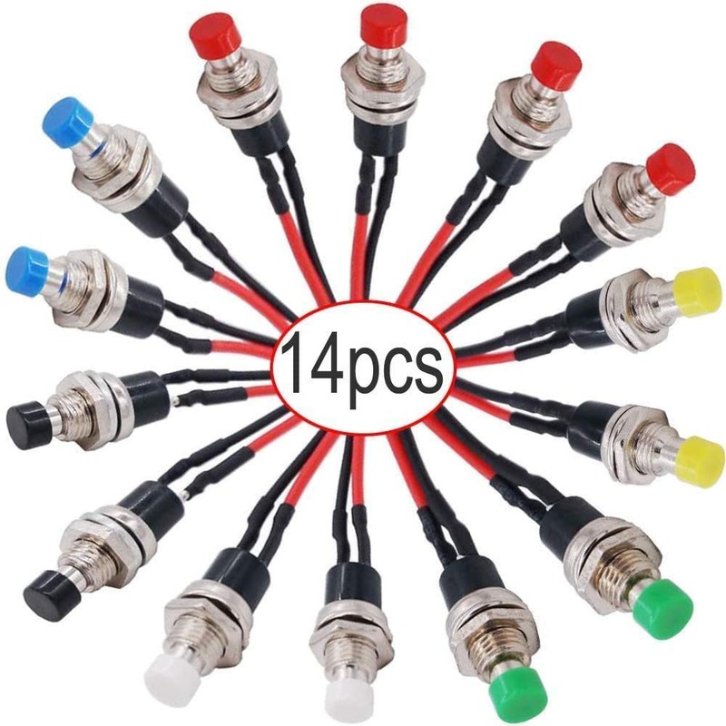 RUNCCI-YUN 14 Pcs 1A 250V AC 2 Pins SPST Normal Open Mini Momentary Push Button Switch with Pre-soldered Wires