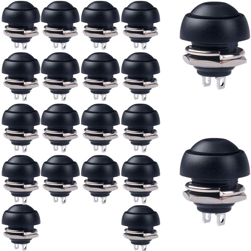 RUNCCI-YUN 20pcs 12mm black Momentary Push Button SPST ON/OFF AC 250V/1.5A 125V/3A, Mini Round Button for Car Trumpet, PC, Table Lamp, Home Doorbell