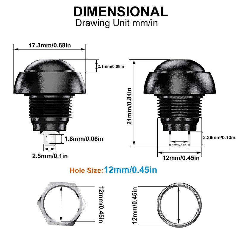 - ★Mini push button made of solid plastic and alloy material, high precision mechanism design offers perfect operation and long service life.