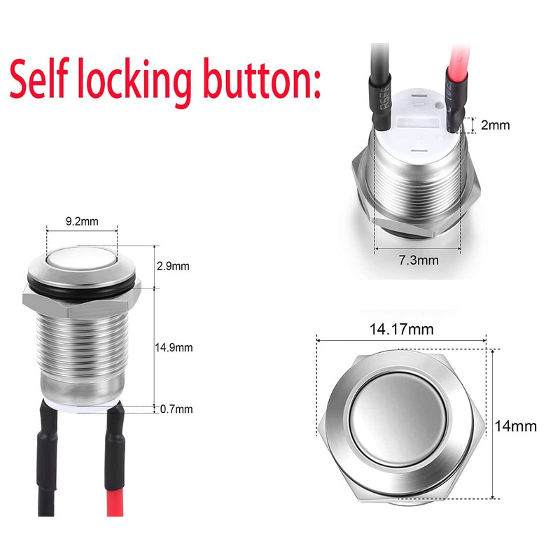 RUNCCI-YUN 5 pieces button 12 V, mini button, locking push button switch 12 mm push button round button stainless steel 2A/12V/24V/125V/250V with wire button Arduino built-in button round (flat head)