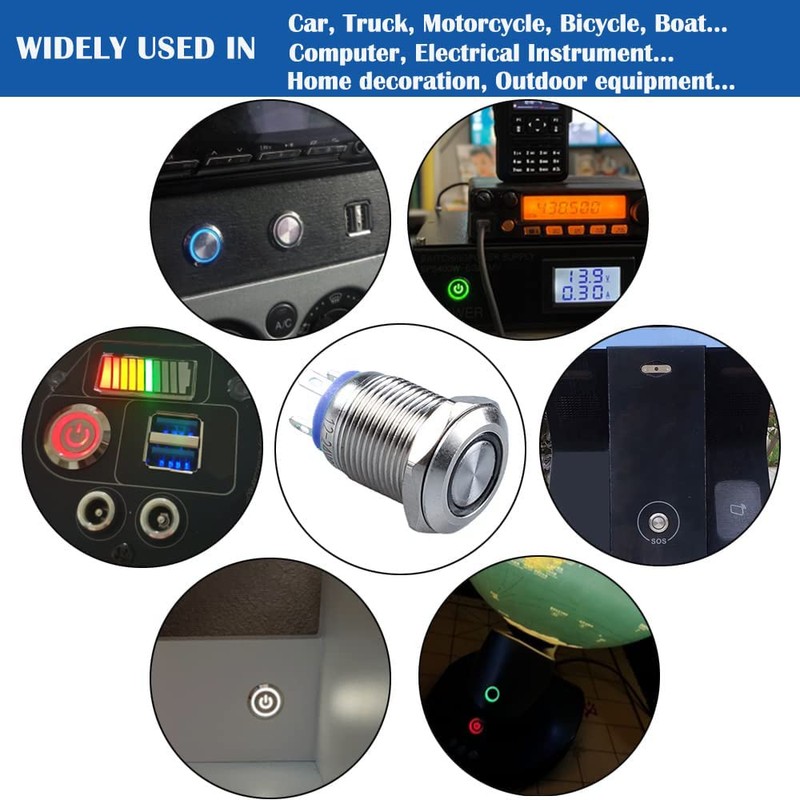 - ✔【Mounting Hole】1/2"(12mm); Head Type: Flat Head; Structure: 1 N/O Contact; LED Light:3A 12V-24V; Halo Ring Blue; LED Lifetime: 40,000 Hours