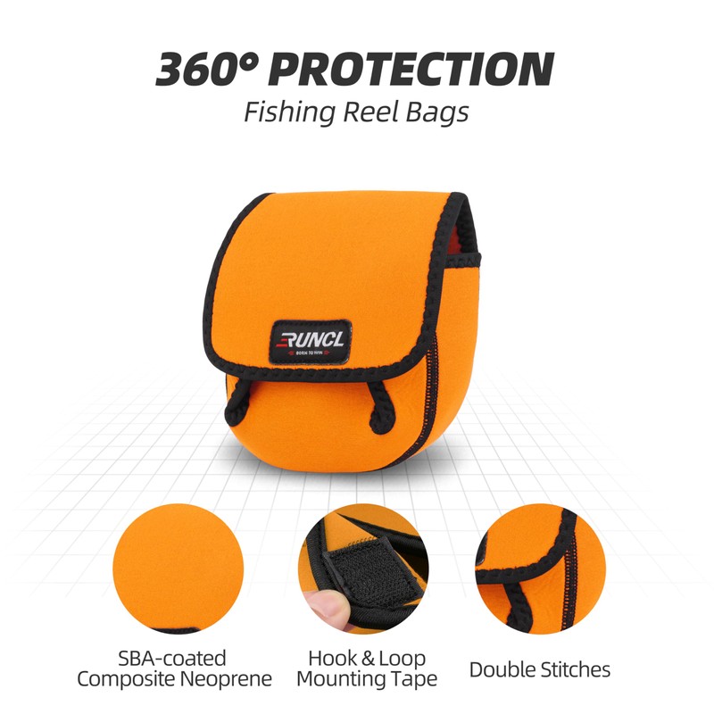 RUNCL Spinning Reel Bag – Protective Storage Pouch for Baitcasting Reels & Spinning Reels, Lightweight & Durable, Ideal for Freshwater & Saltwater Fishing Trips (orange& Black)