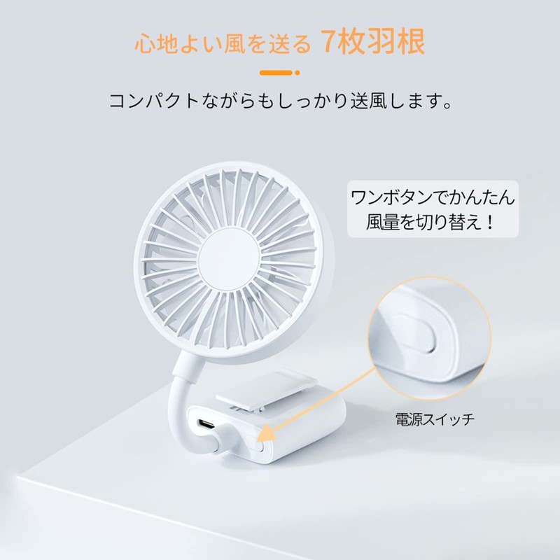 - Adjustable Angle: The arm can be adjusted 270 degrees, and the fan part rotates 180 degrees, so you can freely adjust the air to the location you want to catch. In addition, the direction of the wind can be adjusted up and down, so you can freely cool even when you stand it. Compared to conventional handy fans that cannot move up and down, we have improved the freedom of adjusting the direction of the wind compared to conventional handy fans