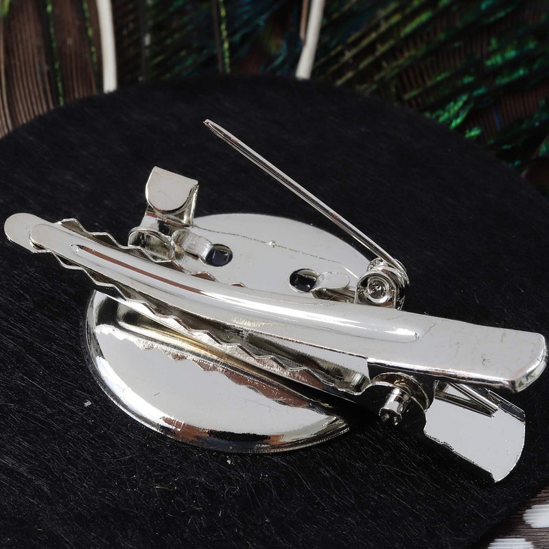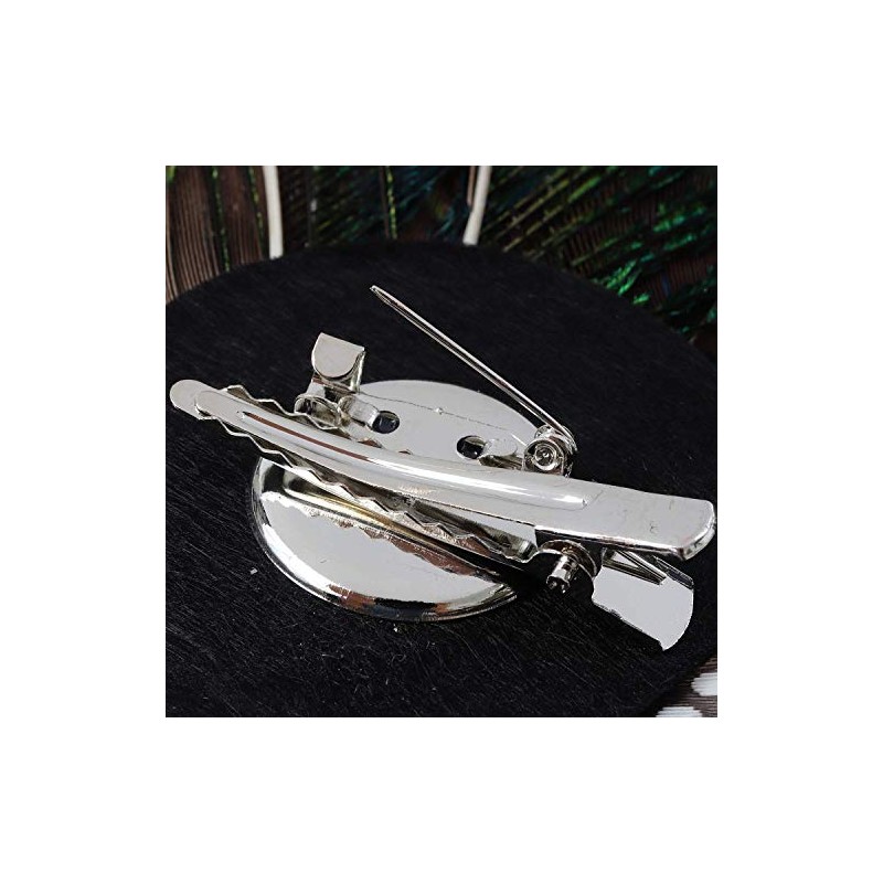 - Attached with a metal alligator clip on the back provide secure fixture .