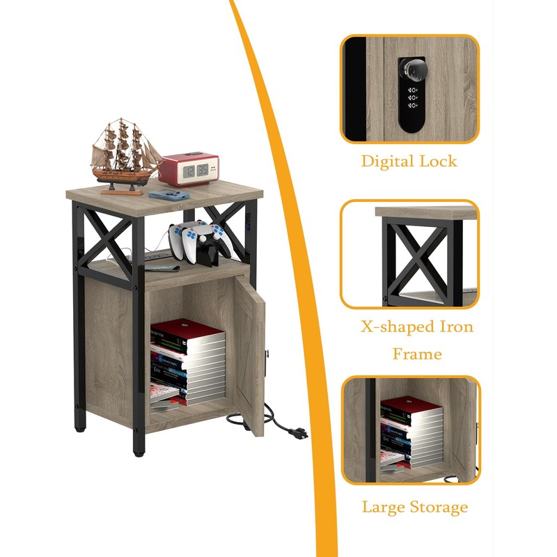 - 【Nightstand with Lock】 Our runjuly night stand upgraded a 3-number combination lock to keep your personal items safe and protect your privacy. It's always important to have a secure place to store your belongings, especially if you live with roommates or have guests over frequently. With a digital lock, your items are safe and secure