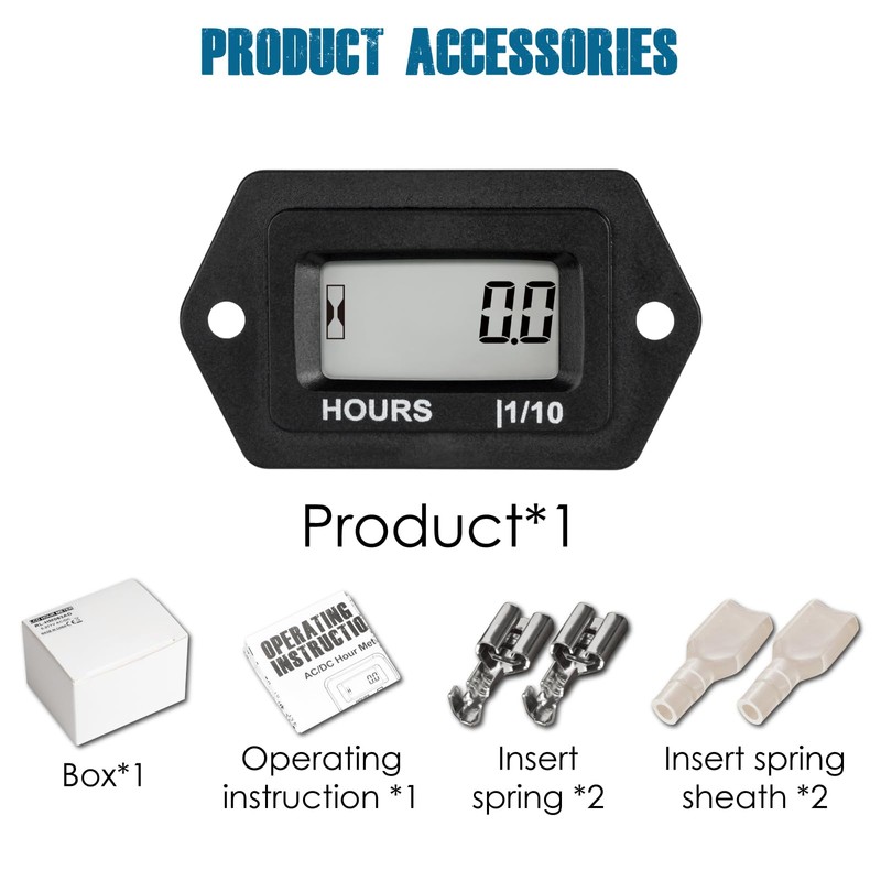 This operating hour meter is suitable for outdoor power equipment, generators, agriculture, construction machinery, vehicles, boats etc... such as: lawn mowers, garden tractors, ride-on mowers, leaf blowers, pressure washers, chainsaw, snow blower, brush mower, line trimmer, line trimmer, pressure cleaner, portable inverter generator, motorcycle, dirt bike, ATV, UTV scooter, paramotor, Harley dual sports bike, golf cart outboard jet ski Ponton boat Mercury Raceboat Hovercraft etc...