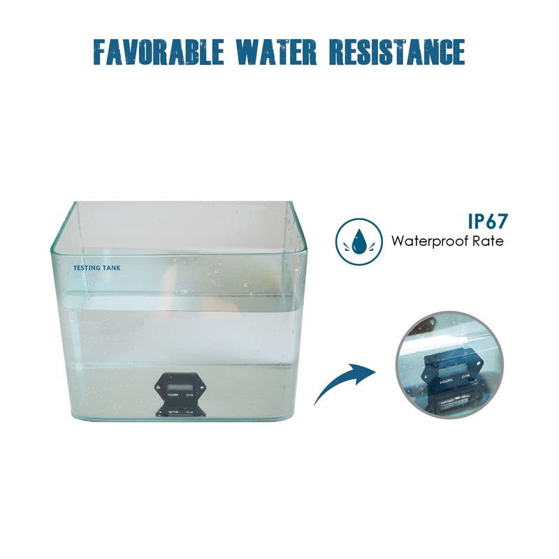 - Water resistance: it is made of strong water resistance thanks to 100% epoxy resin craft up to IP67, which can keep its good working condition during 2 metres underwater; the entire housing design and the transparent PC display window can also avoid moisture and falls in different workplaces.