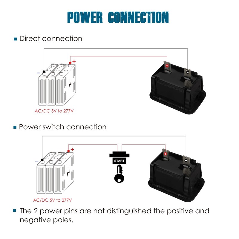 - Product installation: you can mount it at any suitable place by drilling and snapping through plate cut-out size: 36.88 mm x 24.5 mm (1.45 inches x 0.96 inches); it is easy to connect the external power supply devices to start work via the 2 same pins (positive and negative are not distinguished).