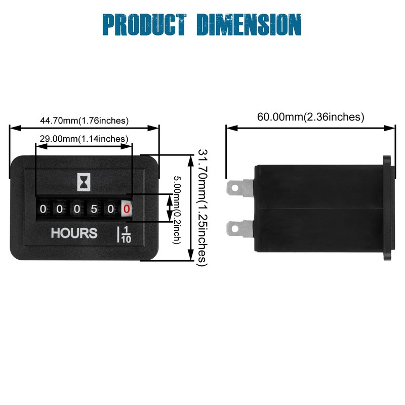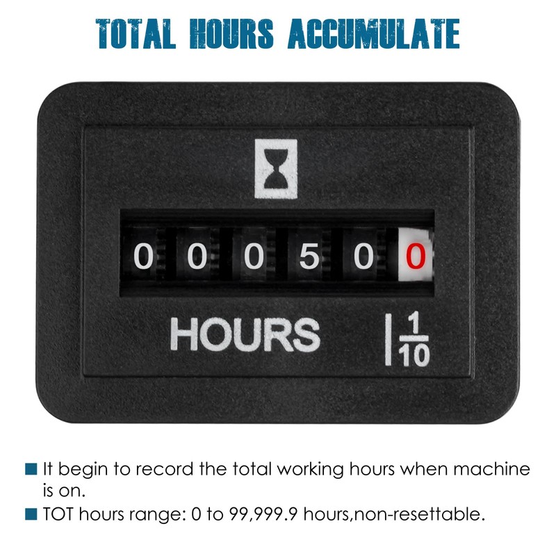 Runleader Mechanical Hour Meter for Maintenance,Volt.DC 6V to 80V for Lawn Mower Golf Cart Boat Forklift Motorhome Sawmil etc.