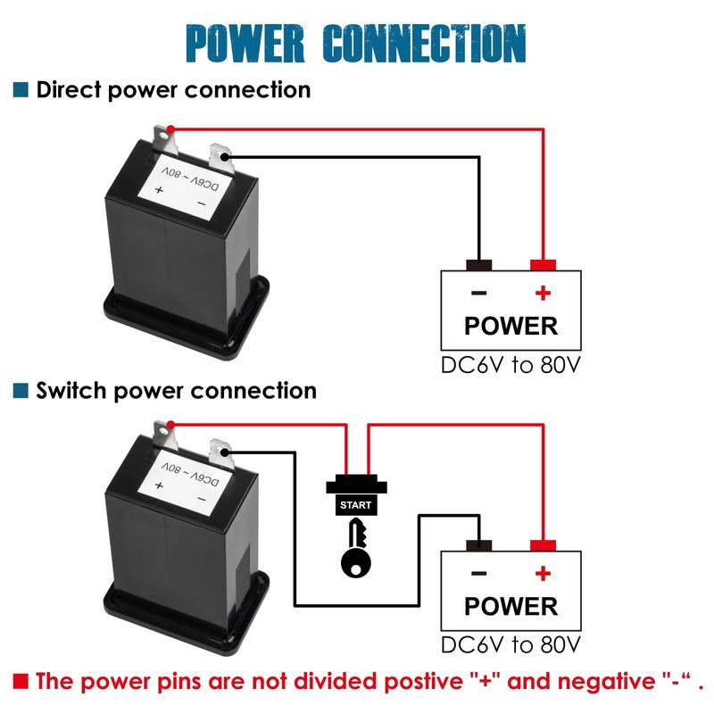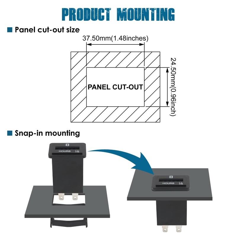 - INSTALLTION ---- Easy to mount it at any proper place by drill-in and snap-in by panel cut-out size: Approx.37.50mm*24.50mm(Approx.1.48 inches*0.96 inch);Easy to connect the external power equipment to start the working by the 2 pins(positive and negative are not divided).