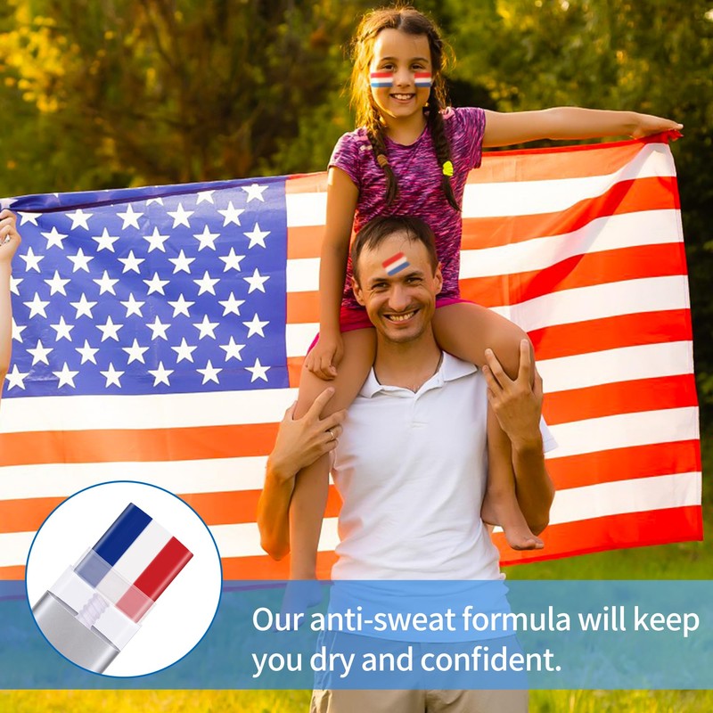 (1)Each set includes 4 tubes of high-quality face paint in vibrant shades of red, white, and blue. These non-toxic paints are easy to apply and quick to dry, ensuring a smooth and even coverage that will last all day.