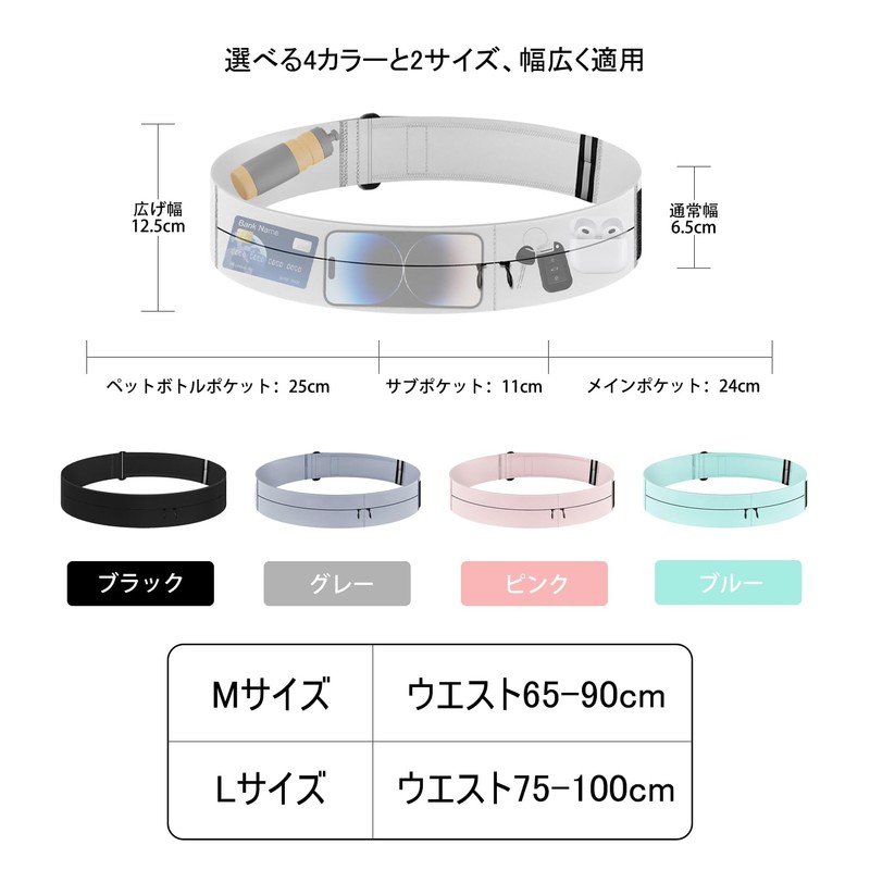 - Incredibly Stable: Uses high strength Velcro that will not loosen or fall off even after extended use. Along with the elastic fabric, the contents of the pocket are firmly attached to your body without feeling too painful. It is suitable for both body and gender. (Size M) Waist: 25.6 - 35.4 inches (65 - 90 cm), L: Waist: 29.5 - 39.4 inches (