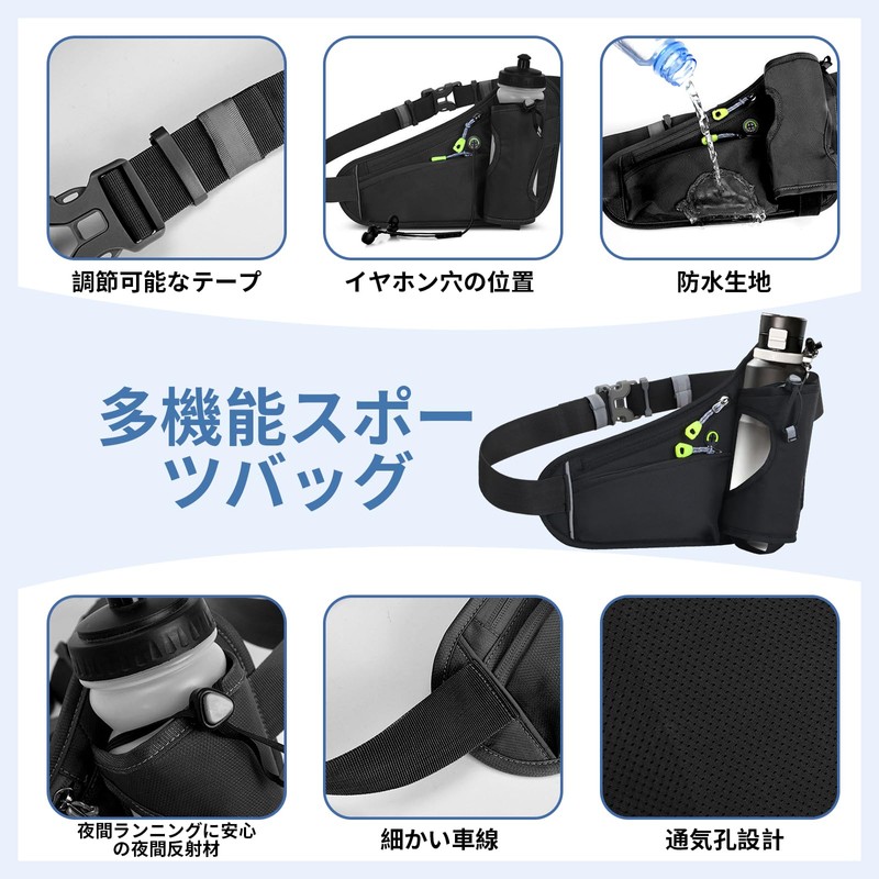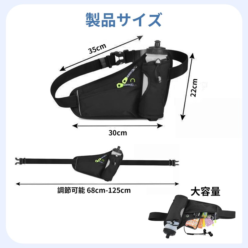 - Large Capacity: This is an extremely lightweight running bag that weighs only 4.9 oz (140 g), but it has two main pockets and two sub-pockets to securely store your smartphone, wallet, keys, cards, and other items you need for running as well. It also has a pocket that holds a water bottle for convenience
