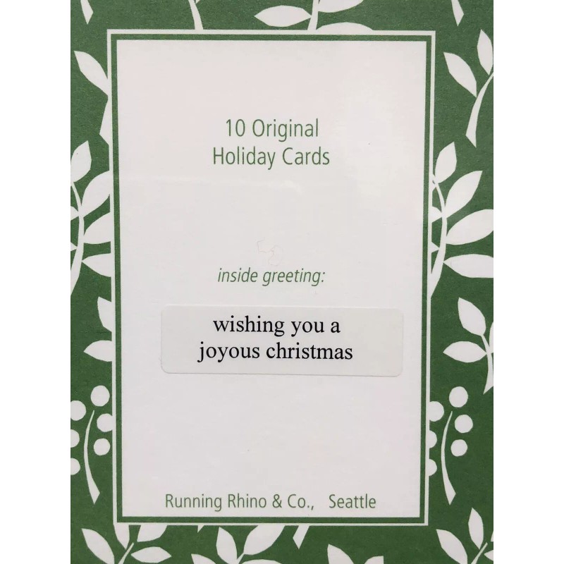 RUNNING RHINO & CO. 10 Christmas Greeting Cards w/ Envelopes Set - Xmas Tree