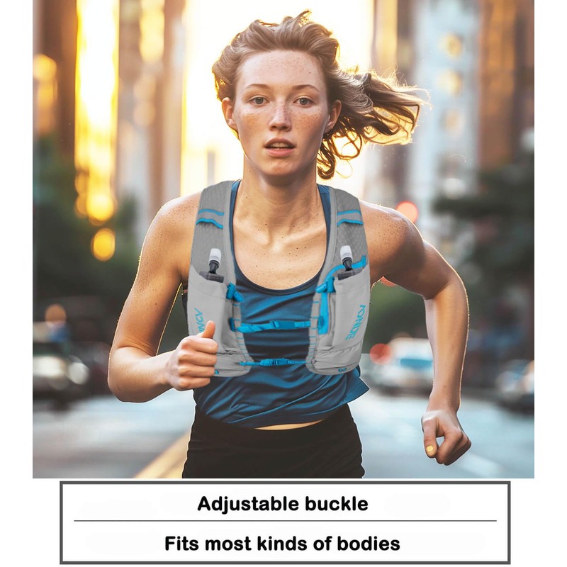 Running Vest for Men Women, Hydration Vest for Running Hiking, Grey Hydration Vest with 2*500ml Collapsible Water Bottle, Nylon, 5L Capacity, Breathable and Lightweight