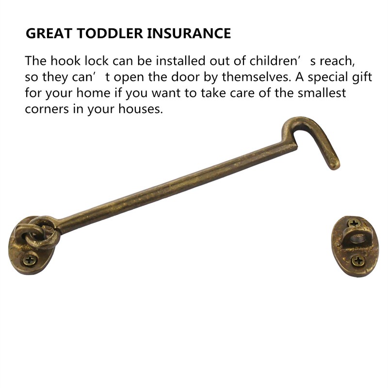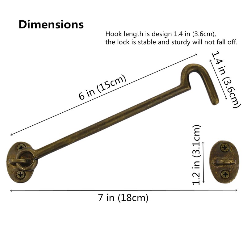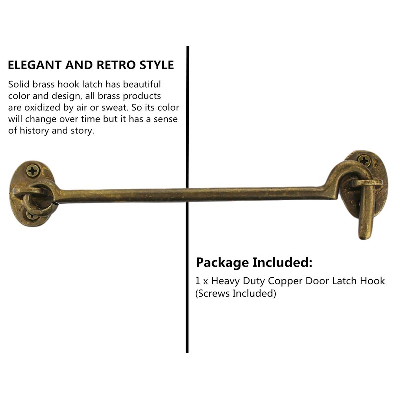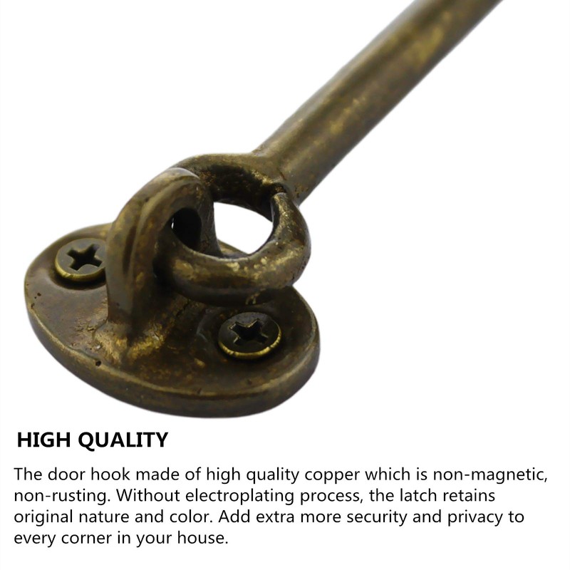 - Anti-corrosive and sturdy small door hook latch is necessary .Pure copper Antique Barrel Bolt Buckle Length Reversible Vintage Rustic Design Cast copper Cabin Hook solved the problem of corrosion and fracturethat often occurs in many similar products on the market.Made out of Solid copper, The eye hook latch has durable, Anti-corrosion finishes.