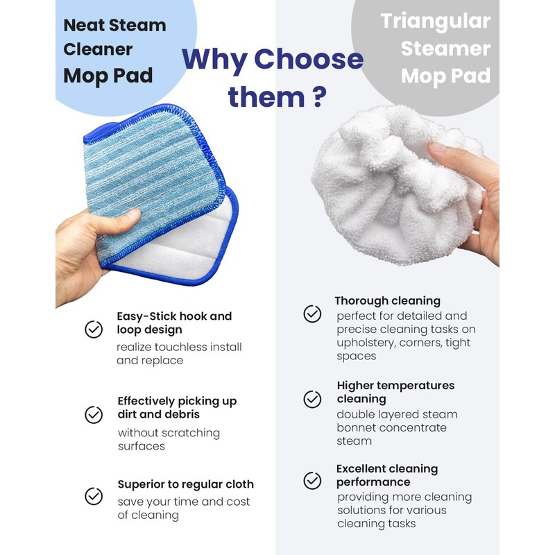- COMPATIBLE WITH DUPRAY STEAM CLEANER: Steam mop accessories only fit for dupray neat steam cleaner. Including steam mop replacement pads and DOUBLE LAYERED small bonnet (Triangle) for steam cleaner, specially for floor cleaning and precise cleaning