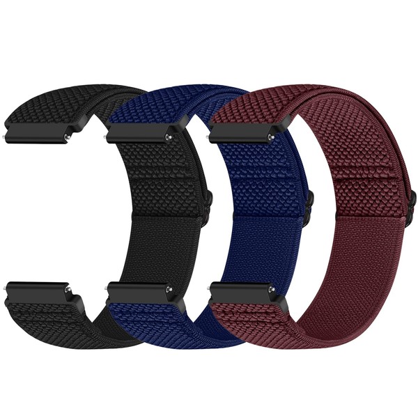 Runostrich Quick Release Nylon Watch Band - Choice of Width - 18mm, 19mm, 20mm, 22mm, 24mm Elastic Watch Straps Adjustable Stretchy Solo Loop Sport Nylon Replacement Wristband for Women Men, 3pcs