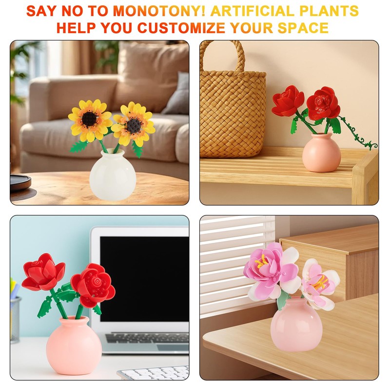 runpeak Flower building blocks toys - Botanical Decorative Artificial Flowers Plant (Pink)