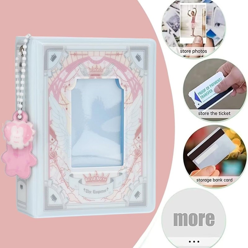 RUNRAYAY 3 Inch Kpop Photocard Binder, Crown Mini Photo Album Holder Book, Hollow Kpop Binder Collector Book 40 Pockets with Lovely Pendant for Photo Collection (D)