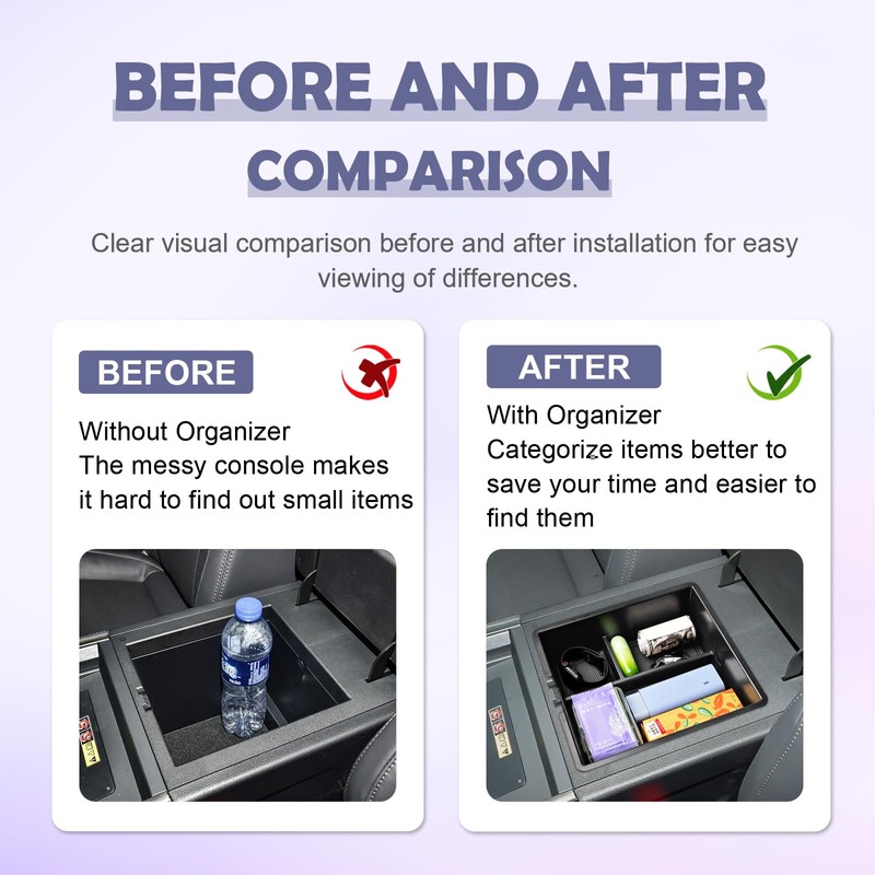 - Simple to Assembly -- You can easily install the RUNROAD tray in your GX550's armrest box without any hassle. The soft liners on the tray ensures that your items won't move around or get lost while driving.
