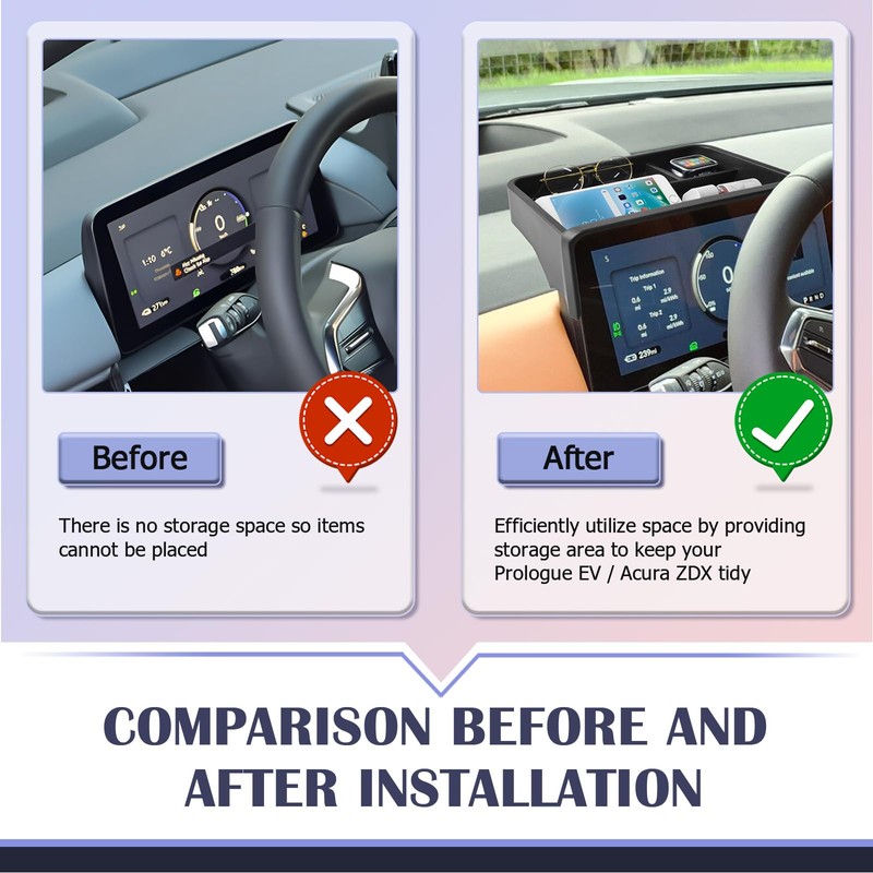- [ Efficiently Utilize Space ] : This Dashboard Storage Organizer Tray is designed to utilize and maximize the storage space in your Prologue EV / Acura ZDX, allowing you to neatly store and organize your essentials such as phone, keys, sunglasses, and more.
