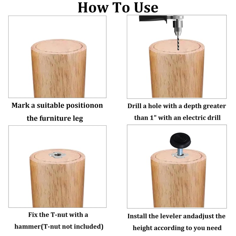 - Versatile Applications: These furniture levelers are suitable for various applications, including workbench legs, tables, chairs, and cabinets. Their versatility makes them an essential accessory for home improvement and DIY projects.