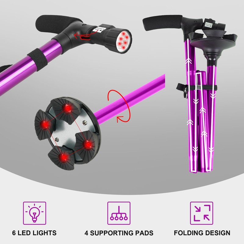 RUNZI Folding Cane with Led Light, Adjustable Canes and Walking Sticks for Arthritis Disabled and Elderly (Purple)…