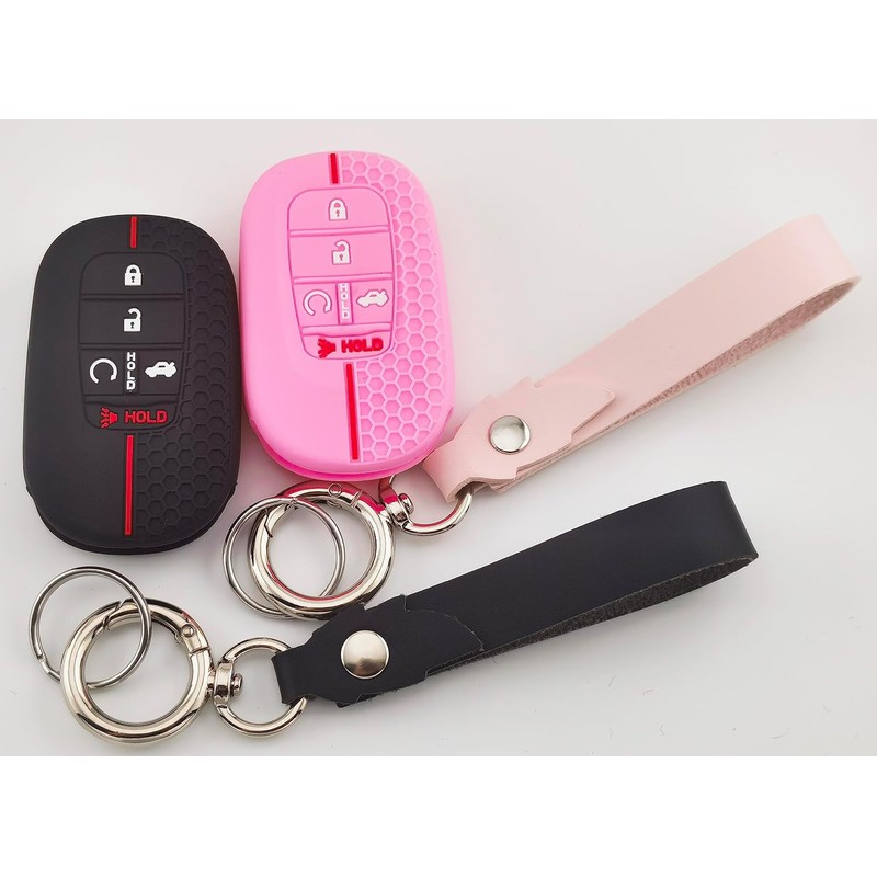 RUNZUIE 2Pcs 5 Buttons Silicone Smart Key Fob Cover for 2022 2023 2024 Honda Accord Civic Pilot HR-V CR-V Sport SI EX EX-L Touring (Black/Pink)