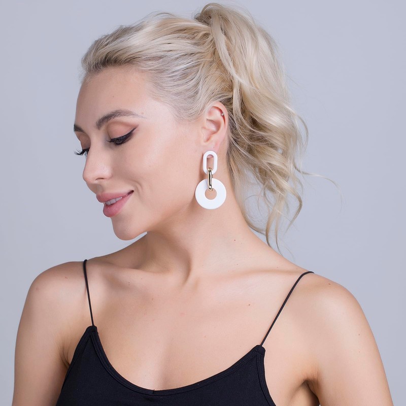 RUOFFETA Acrylic Rectangle Earrings, Fashion Acrylic Square/Oval/Hoop Statement Drop Earrings for Women(White Round)
