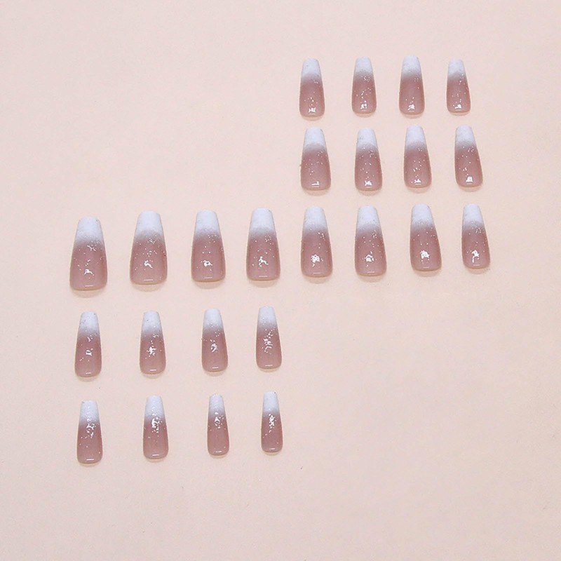 RUOKEXIN Coffin Press on Nails Medium Length Fake Nails Ombre False Nails with Glitter Designs Sparkly Acrylic Artificial Nails Full Cover Glue on Nails Cute Stick on Nails for Women 24Pcs
