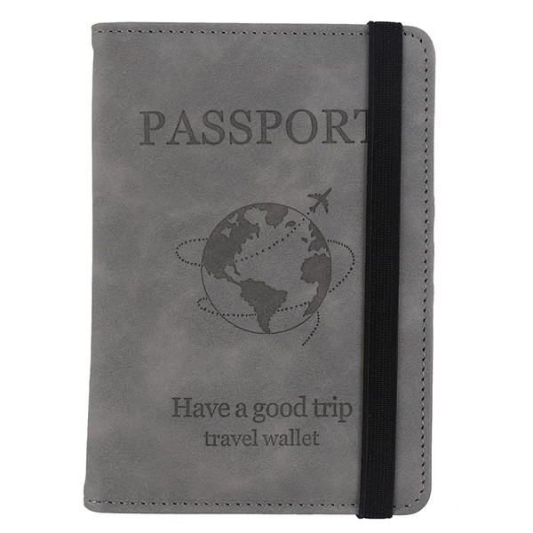 RUPEWA Passport Holder, RFID Blocking & Secure Travel Wallet with Multiple Card Slots, PU Leather, Grey
