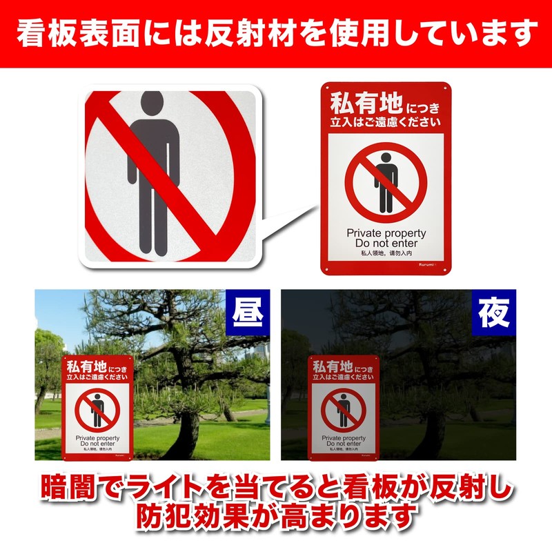 Rurumi Private Land No Access Signs, Aluminum, Security Prevention, Reflective, 11.8 x 7.9 inches (30 x 20 cm), Security Plate, Warning, Waterproof, For Indoor and Outdoor Use, Aluminum Signs, No Entry, No Pass-Through (1 Piece)