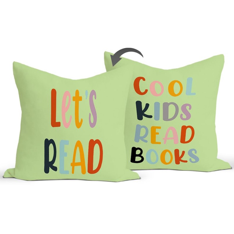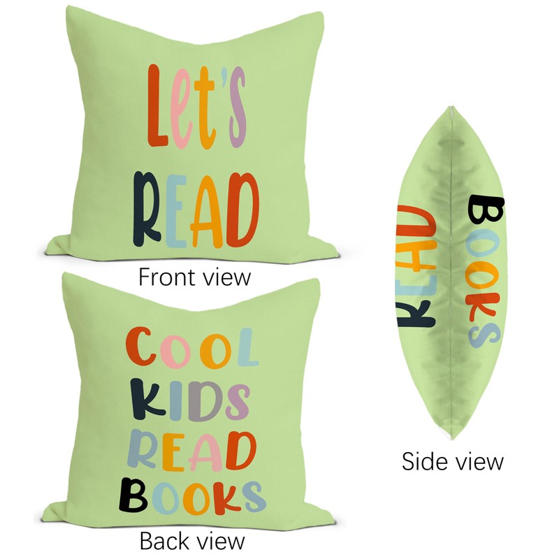 Rusenbao Classroom Reading Green Pillow Covers - Toddler Reading Nook Kids Decor Daycare for Book Corner Playroom Nursery, Let's Read Cool Kids Read Books, 18 x 18 Inch Pillowcase