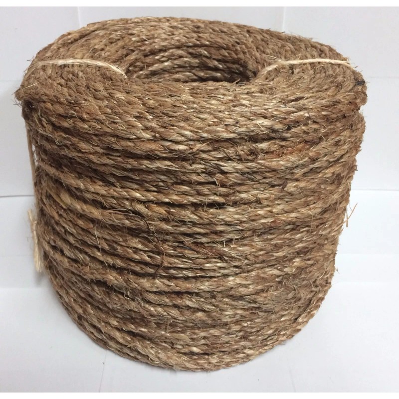 PLEASE READ THE ENTIRE DESCRIPTION Up for sale is 1/4 inch diameter x 600 feet long Manila Rope. It has a mix of tans, browns and blacks for color and is lightly treated to help prevent rot. Some things to consider before purchasing this manila rope: 1. Your color can vary from the photo in the listing. Manila is made from a natural plant and colors will vary with the season of harvest and growing environment. 2. Manila Rope will shrink once exposed to moisture, much like a cotton T-shirt. Please allow for this. 3. This manila rope has a turpentine smell to it that will eventually fade, but may make it unsuitable for indoor use. This is the preservative that helps prevent rot and mildew. 4. This Manila Rope is not suitable for use with pets, including birds. 5. Manila Rope will require a larger diameter hole than the diameter of the rope, if inserting through a hole. 6. Can give splinters to hands while handling.