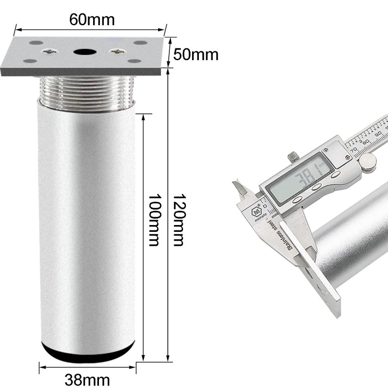 Rusoz 4Pcs Adjustable Furniture Legs,Metal Table Legs 100 mm Matt Sliver Aluminum Alloy Round Sofa Feet Replacement Adjustable Height 0-10 mm with Screws for Cabinet,Bed,and Wardrobe