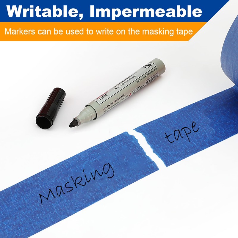- No Residue: When removed, masking tape leaves little to no marks or residue on the surface to which it is applied, which helps to keep the surface clean and attractive, so you don't have to worry about cleaning. In addition, the tape can be written on and used as a marker label.