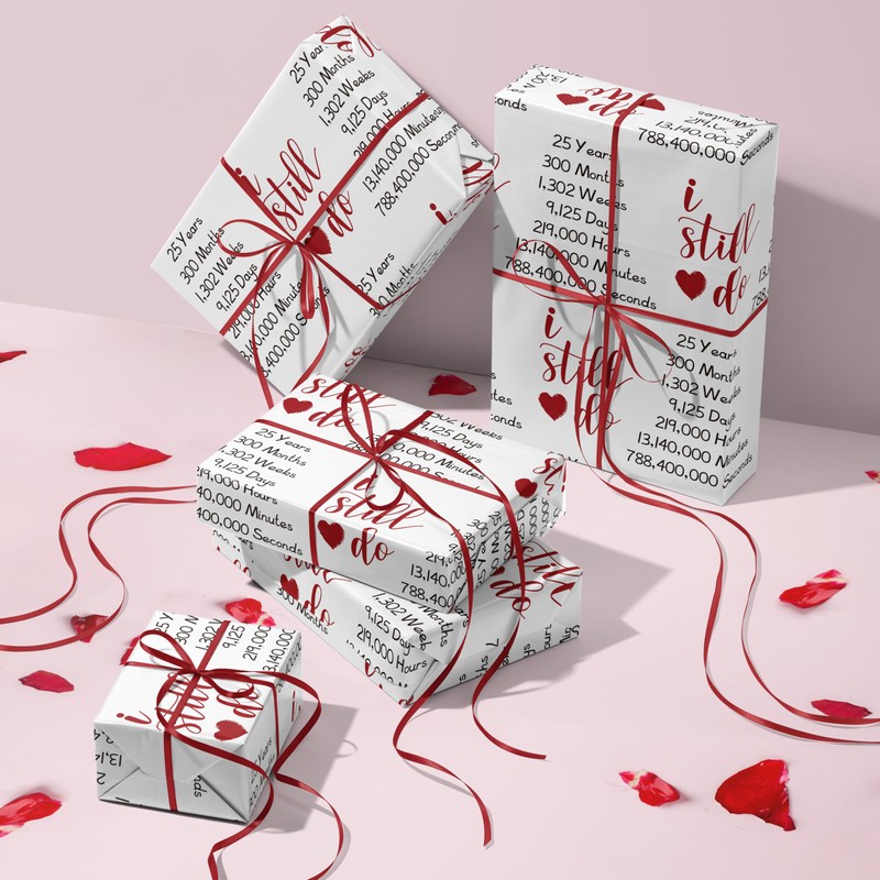 RUSPEPA 25th Anniversary Wrapping Paper Roll for Silver Wedding - 17 Inches x 16.4 Feet - I Still Do Pattern on Durable Paper for 25th Anniversary, Silver Wedding and Special Occasions