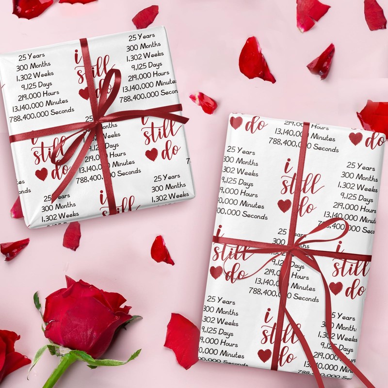 - Vibrant Design: Wrapping paper features a red color "I still do" and time recorder patterns that adds commemorative significan to any gift, making every gift stand out