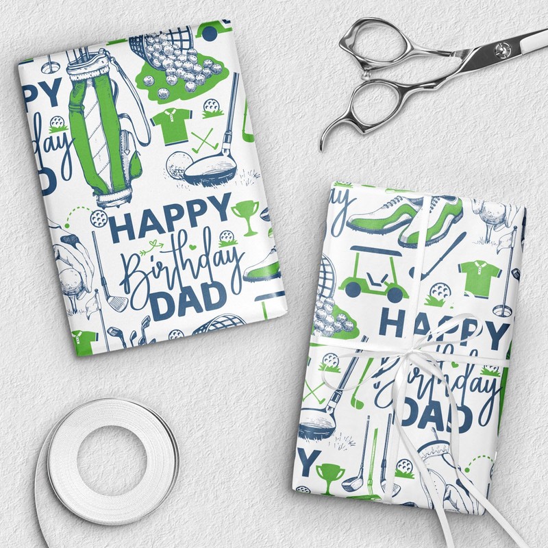 - BIRTHDAY DESIGN: Wrapping paper printed "HAPPY BIRTHDAY DAD" and golf theme pattern make the gift wrapping be more eye-catching and bring the birthday father the most sincere blessing