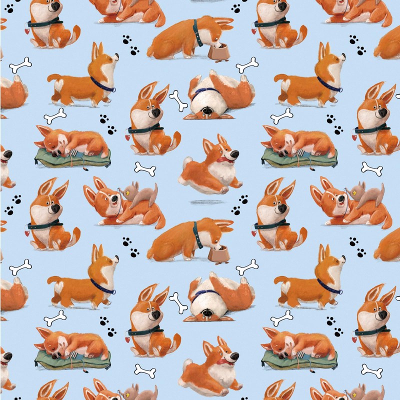 - Adorable Corgi-Themed Design: Features a playful all-over print of cartoon-style corgis in various cute poses like laying, sitting and stretching, scattered with paw prints and dog bones. A delightful design that brings smiles to both kids and adults